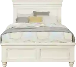 The Lake Town bed offers a subtle yet striking grandeur, thanks to the high headboard and elegant picture frame moulding. Crafted with poplar solids and acacia veneers, the transitional style is well-established for both contemporary and traditional decors. Wire-brushed details on the finish add casual warmth. Mattress and foundation (if required) sold separately. Bed shown is queen size.