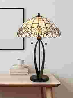 Highlighted by its glass dome shade and ornate chicness of the base, the Lakeaire Lane tiffany table lamp exudes utter elegance from every angle. Finished in a bronze color, this lamp has a base complimented by the neutral tones of the glass shade. The lamp, with two pull chain on/off switches, can accommodate up to two 100 watt bulbs (not included).
