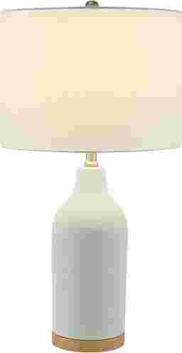 Elevate your decor with a tasteful tribute to retro style through the Lakepointe Shores White Lamp. Drawing inspiration from the clean lines and Mid-Century aesthetics, this modern table lamp seamlessly blends wood and ceramic materials. The ceramic body boasts a textured sand surface, harmonizing beautifully with the natural wood base. To crown this exquisite piece, an off-white fabric drum shade completes the look, adding a touch of timeless elegance. Partial assembly may be required.