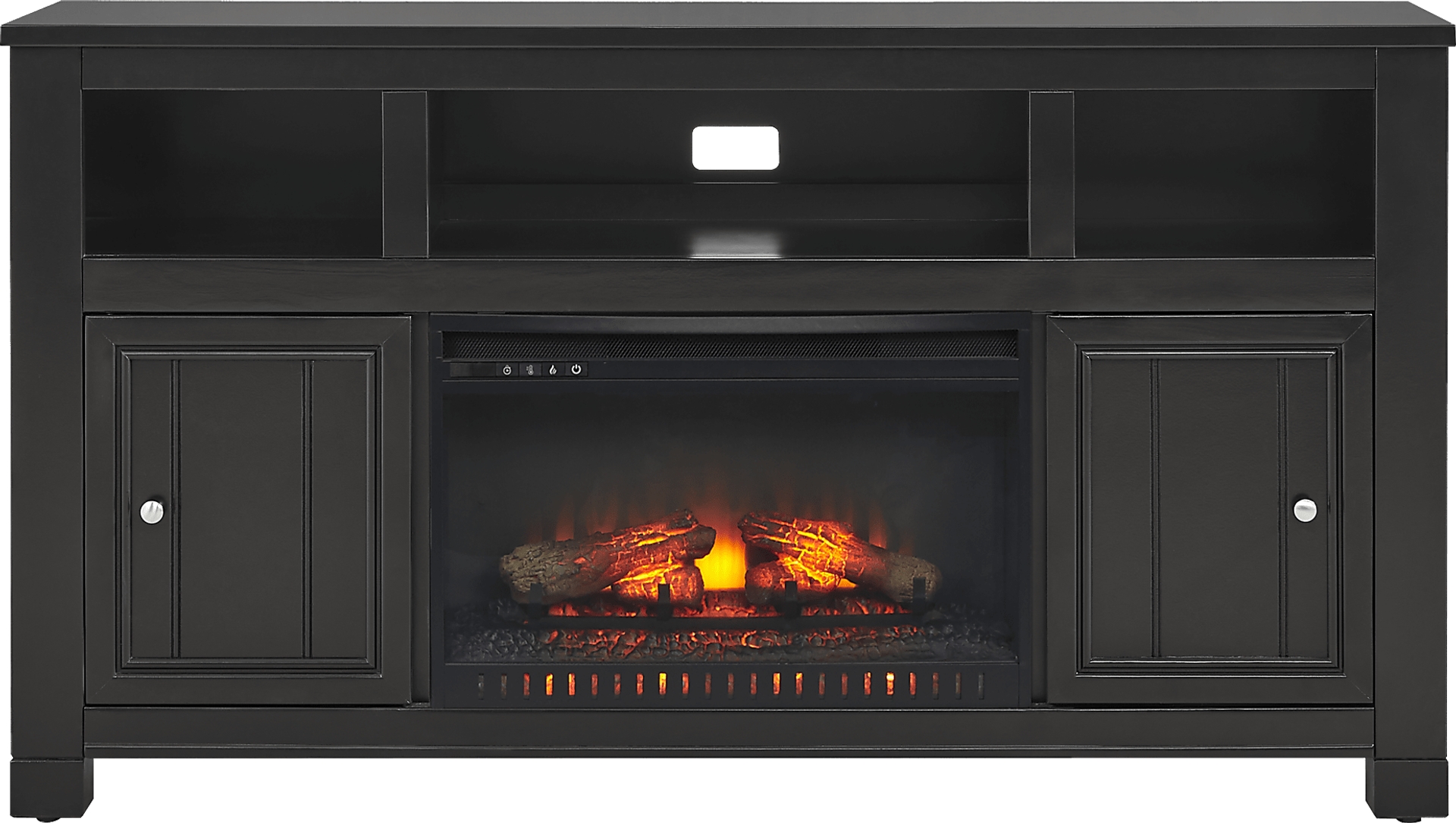 Lakeside Cottage Black 64 In. Console With Electric Log Fireplace