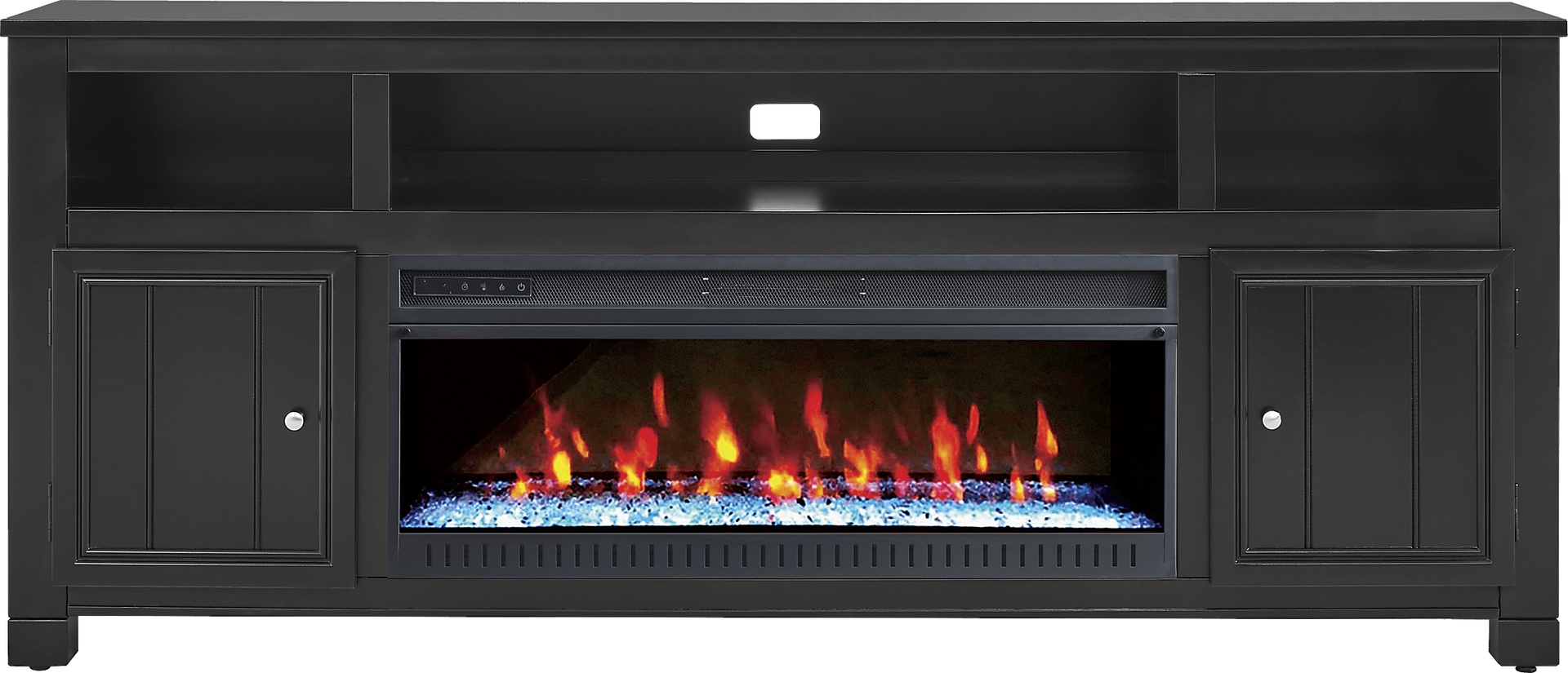Lakeside Cottage Black 84 In. Console With Electric Fireplace