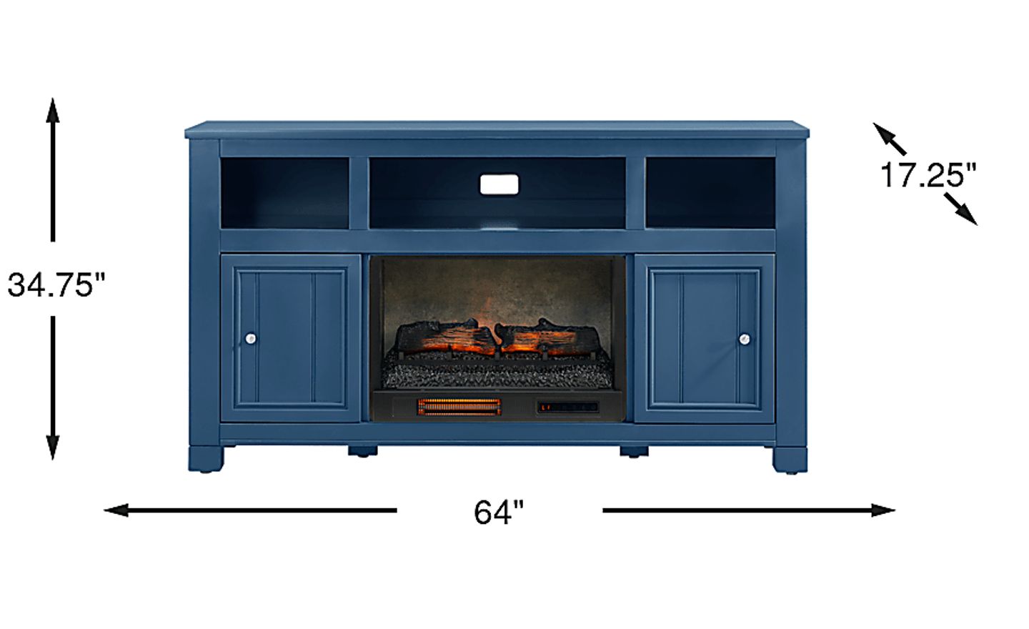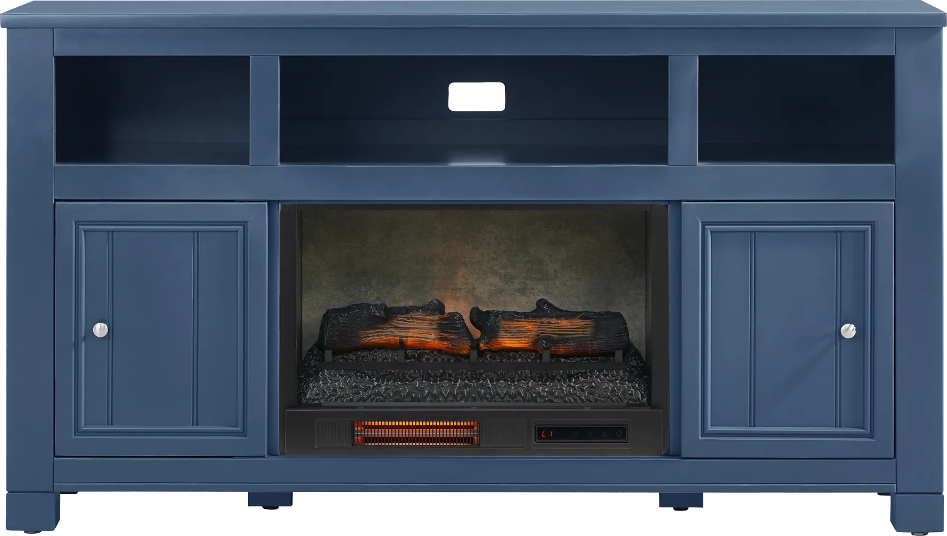 Lakeside Cottage Navy 64 In. Console With Electric Log Fireplace