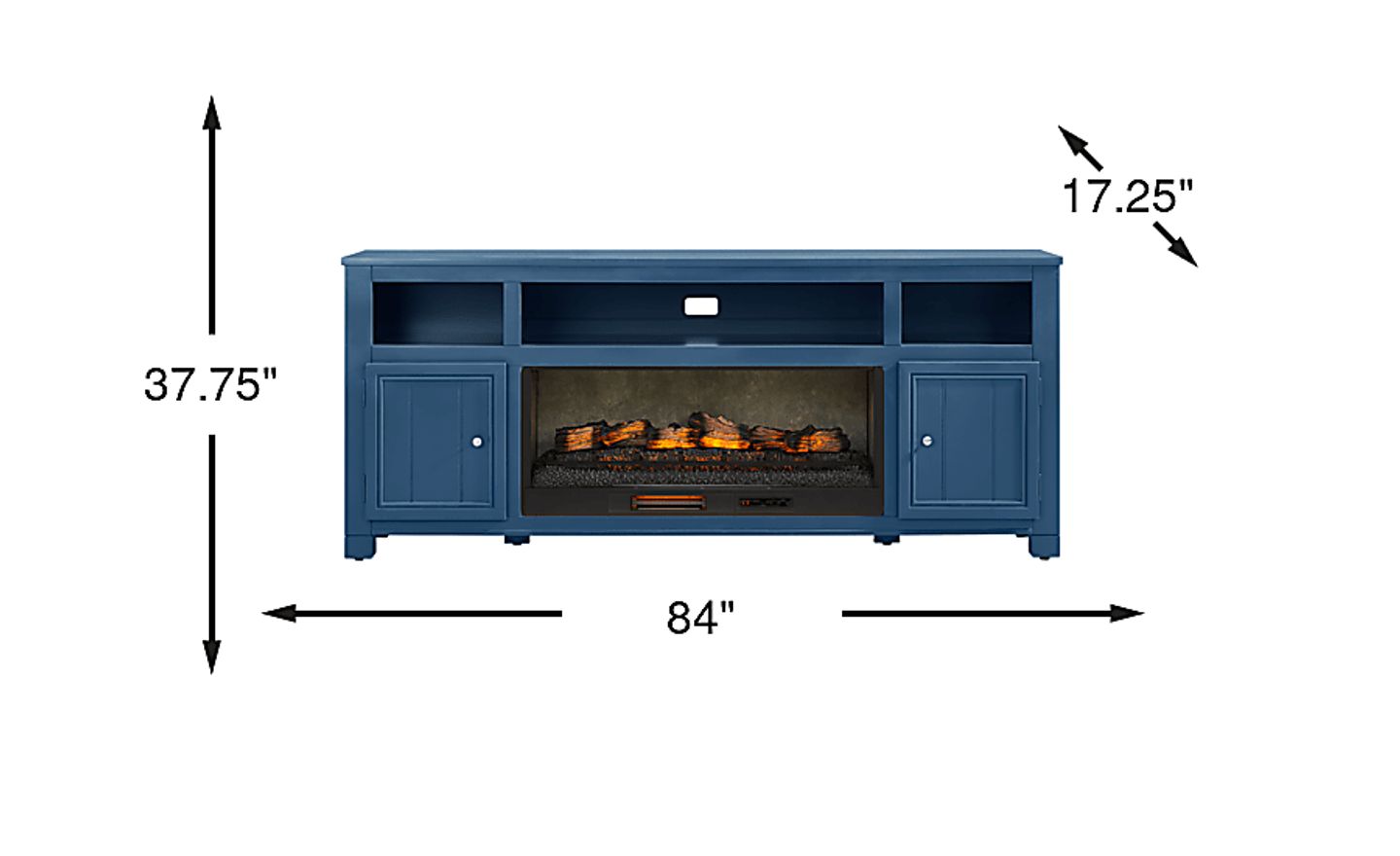 Lakeside Cottage Navy 84 In. Console With Electric Log Fireplace