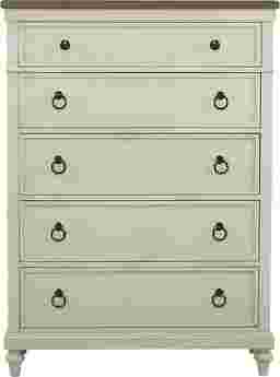 Sturdy and spacious, the Lakeside Manor chest accommodates most any storage need. Crafted of poplar solids with flat cut elm veneers rendered in a linen finish, this transitional chest is accented with oil rubbed bronze finished drawer pulls and a contrasting dark elm finished top. Boasting five spacious drawers utilizing quality English dovetail construction, including a cedar lined bottom drawer, this charming chest stylishly expands your bedroom's storage capabilities.