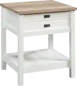The Lakespray white nightstand has a drawer that features metal runners and safety stops to keep you and your family safe. Finished on all sides for versatile placement anywhere in your home. Open shelves provide additional storage for your favorite home dcor. Quick and easy assembly with patented T-lock drawer system, because your time is valuable. Customer assembly is required.