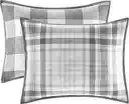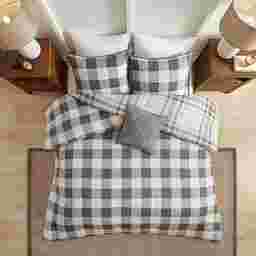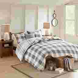 Create a casual farmhouse atmosphere in your bedroom with the Lakyla 4 piece cotton printed reversible comforter set. This cotton comforter features a gray and white plaid print on the face with a checkered pattern on the reverse, for a charming country look. Two reversible shams with hidden zipper closures match the patterns on the comforter, while a square embroidered decorative pillow adds a casual finishing touch to comforter set. This set includes a comforter, 2 shams and 1 square decorative pillow. Made with 100% cotton percale, this bedding set is also OEKO-TEX certified, meaning it does not contain any harmful substances or chemicals to ensure quality comfort and wellness.