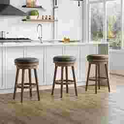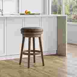 Create a space for endless conversation in your home with this backless Lalage bar-height stool. A classic silhouette meets functional design technology to accommodate the needs of your contemporary entertainment space. Adjust the height of this stool to fit at any bar top or bar-height counter and ensure a comfortable experience for any guest with a 360° swivel seat and footrest. A light walnut wooden frame and faux leather upholstered seat curate a cozy atmosphere without harsh contrast while gently tapered legs provide a stylish flare and structural integrity. Customer assembly is required.
