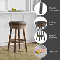 This stool features a 360° swivel seat, providing complete rotational movement. This is a significant benefit for open-concept living spaces, as it allows you to easily turn between your kitchen island and the rest of the room without needing to move the stool's base. An integrated footrest is also included to ensure ergonomic support at any height.