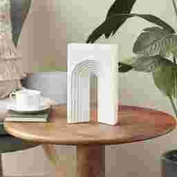 Inspired by sleek elegance and clean lines, a minimalistic design offers effortless luxury with monochromatic tones and bold, angular structures. Crafted entirely from marble, the Lalne white decorative sculpture combines the natural beauty of stone with a modern geometric design. The arched decorative statue is a stunning piece in matte white finished marble, with its gray vein undertones subtly enhancing its minimalist appeal. This marble sculpture stands out with its distinctive rectangular shape that combines intricate arched groove interior and compelling overall geometric appeal. The white marble sculpture measures 6.55L x 2.15W x 10.75H inches, and weighs 9.795 lbs. Customer assembly is required.