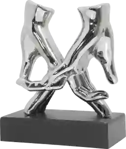 The Laloni is a wonderful and meaningful sculpture, the artist depicts the commitment of eternal love in the depicted locked fingers. Would also be a wonderful gift for a variety of special occasions. The creation is cast in porcelain, then plated with chrome and mirrored using high speed hand polishing and finishing, creating the beautiful finishing result.