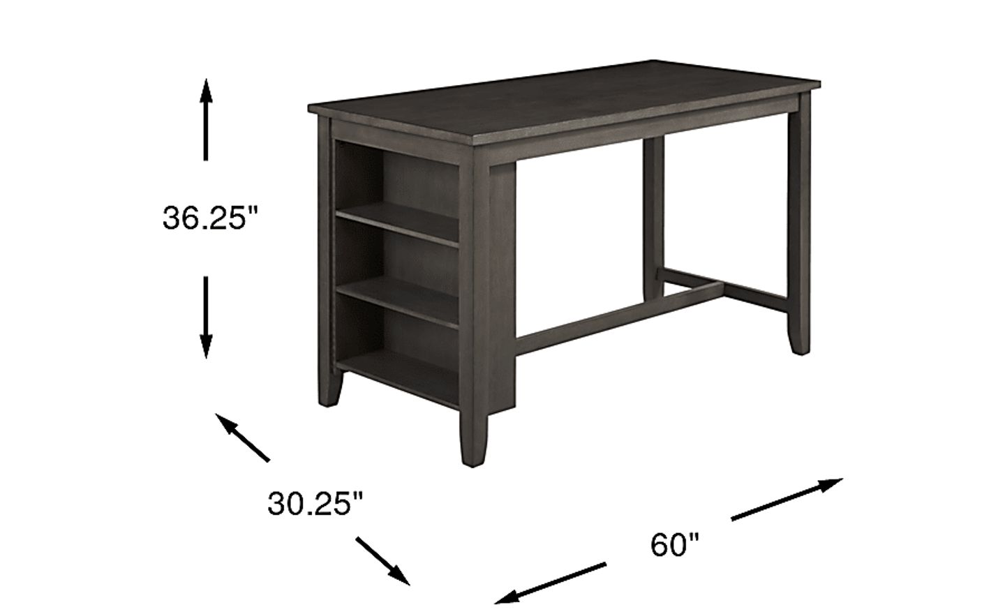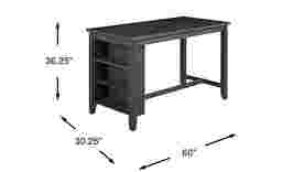 Gather for mealtime with the stylish and useful Lamartine dining table. This counter height piece features a rustic cottage style design in a gray finish. This table has handy built-in shelving at one end making it great for placing against a wall.