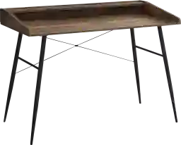 This Lambright computer desk with hutch in a brown reclaimed wood-look finish will take your home office to the next level. The sides of the desktop gradually rise to meet the hutch for a sleek look. The top of the hutch doubles as a shelf, while the space underneath is divided into two storage cubbies where you can tuck away small items and keep your work surface organized. Providing support and stability is a metal base in a black finish and featuring striking design details, like tapered metal legs and slender X-shaped support bars. This laptop or writing table has a compact design and mid-century modern style that is a great choice if you use your living room or bedroom as a home office. Customer assembly is required.