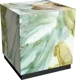 Imagine swimming through an undersea garden with different shades of greens, grays, and pastel tone aquatic flowers. The Lambrose green accent table feels like a magical swim through wavy waters while water lilies float on the gentle currents on a balmy summer day. Add an artistic flair to any room with this beautiful and functional table of reverse printed beveled edge art glass on a black plinth base that enhances its vibrant colors and textures.