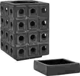 With a 7-inch width and depth, this holder is ideally suited for standard pillar candles. A pillar candle between 3 and 4 inches in diameter will sit securely within the sculptural frame while leaving enough negative space to highlight the architectural design and allow the light to play off the metallic bronze undertones.