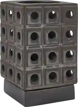 This sculptural candle holder is crafted from earthenware, a type of ceramic known for its natural durability and heat resistance. Unlike lightweight plastic or glass options, this earthenware piece provides a substantial weight and a stable 7" x 7" base, making it an excellent choice for outdoor patios where wind might be a factor. The distressed brown glaze with dark bronze undertones also offers a weather-resistant finish that maintains its architectural depth over time.