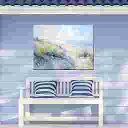 Almost as if the refreshing sea breeze is rolling through your space, the Land and Sea wall art canvas brings a relaxing oceanside mood with its artistic rendering of a sand dune covered in lush vegetation. Gallery wrapped on all-weather poly-vinyl stretcher bars, the vivid image is printed on artist canvas and coated with UV- and waterproof lacquer that prevents fading. Designed to withstand 60 mile per hour winds, this print includes simple and effective hardware for outdoor installation. This outdoor canvas art can be placed in any outdoor location with direct exposure to the elements.