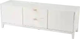 Bring streamlined style to your decor with this Landaue sleek media stand. Two storage drawers and spacious cabinets discretely conceal movies, games, and accessories, while the adjustable shelves allow you to customize your space. A white lacquered finish and gold hardware craft a contemporary look, adding a touch of glam to your design. Your entertaining space gets a chic makeover with this modern media console in your living room or open concept space. Customer assembly is required.