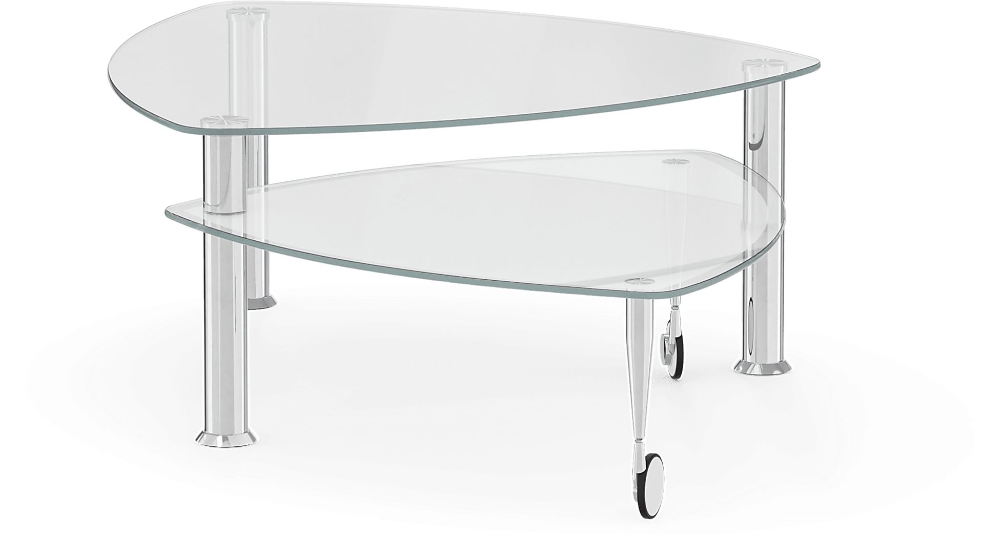 Eye pleasing and contemporary, the Landmark cocktail table will be the perfect finishing touch for your room. The cocktail table has a uniquely shaped tempered glass top; attached below is a versatile extra table on casters that slides out for handy extra surface space.