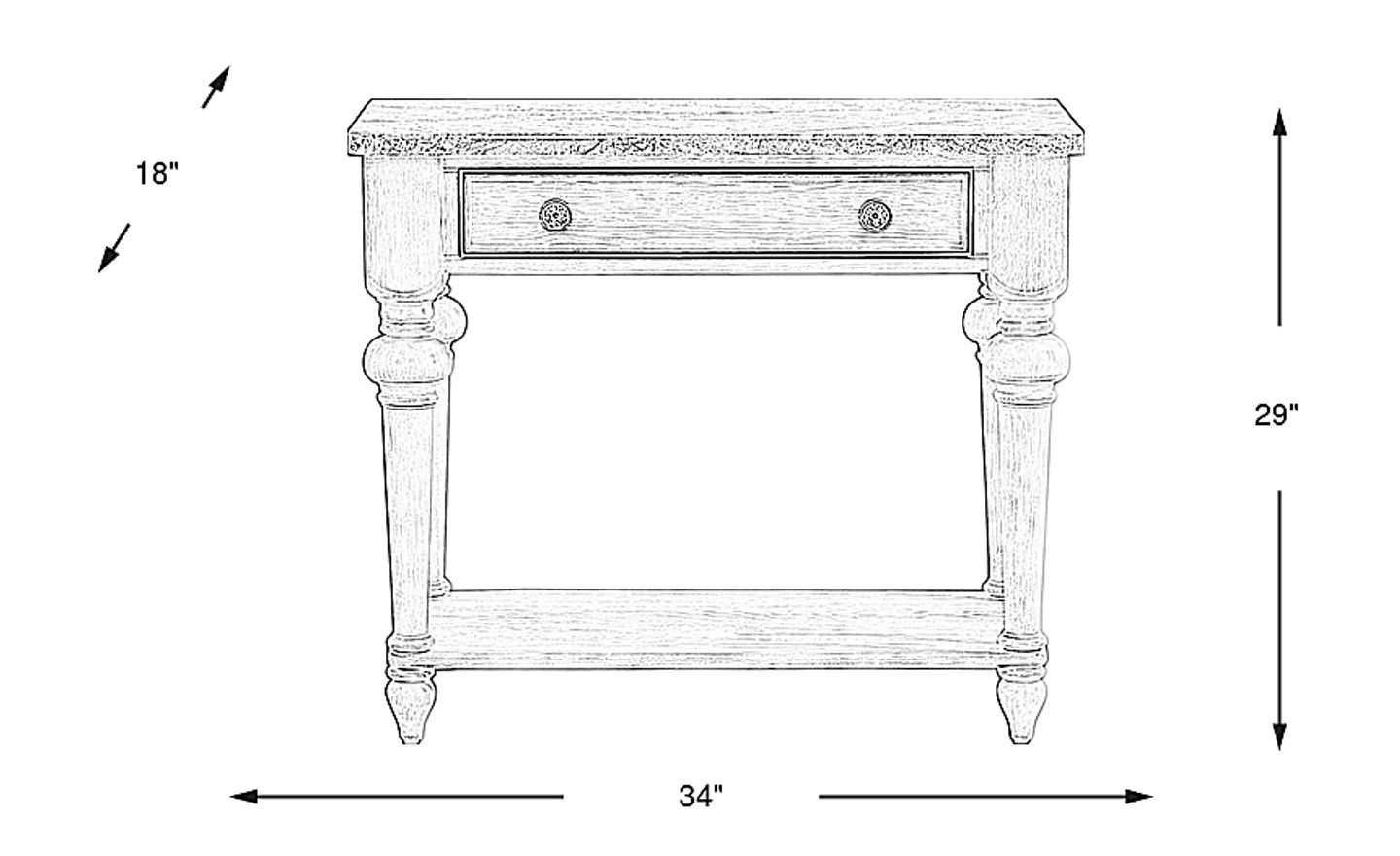 Luxurious sophistication with an underlying rustic charm are everything your tranquil escape needs when you bring the Landon Creek large nightstand into your home. Crafted of hardwood solids with split heart cathedral hickory veneer in an antique white finish, the nightstand adds ample storage below and a drawer for keeping bedside necessities hidden but within easy reach. Beautiful marble adorns the top, adding unexpected finery and contrasting texture.