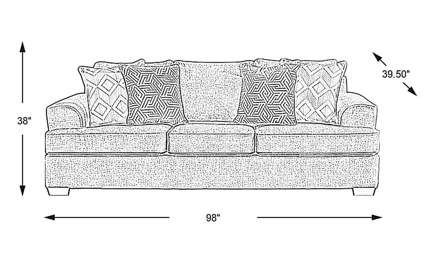 98"w"w x 39.50"d"d x 38"h"h