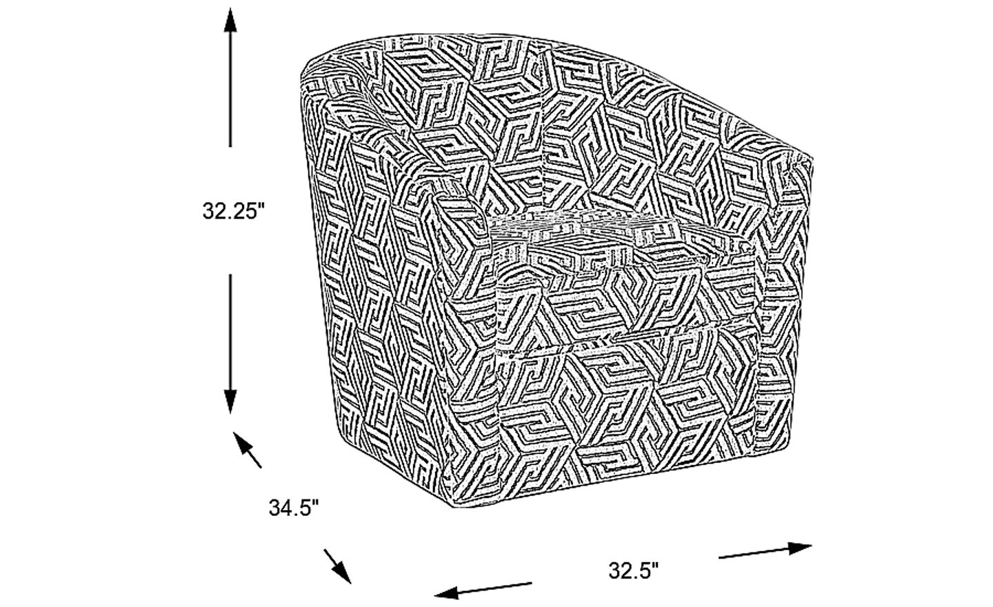 Subtle yet striking, the Landon Hills swivel chair mixes relaxed vibes with comfortable style. Fashion with woven upholstery, this swivel chair features a pivot motion base and a bucket seat design accented by an irresistible geometric pattern in a slate gray tone. Upholstery: 100% Polyester.