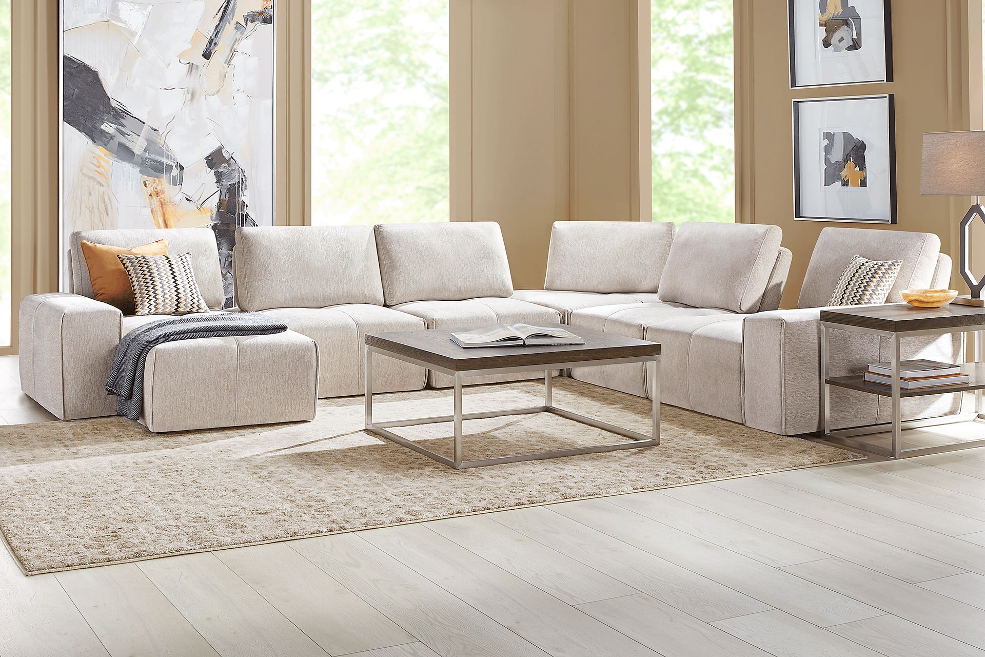 Luxurious versatility and a bold, confident style give the Laney modular sectional its one-of-a-kind charming sophistication. This collection features individual seats and pieces that can be combined and rearranged into exactly the configuration you need. Upholstered on all sides in a soft beige chenille, the oversized seats of this modular sectional offer dual-position backs for adjustable seat depth. Clean, tailored lines and tufting details keep the whole look cohesive no matter how the sectional is arranged. Upholstery: 100% Polyester.