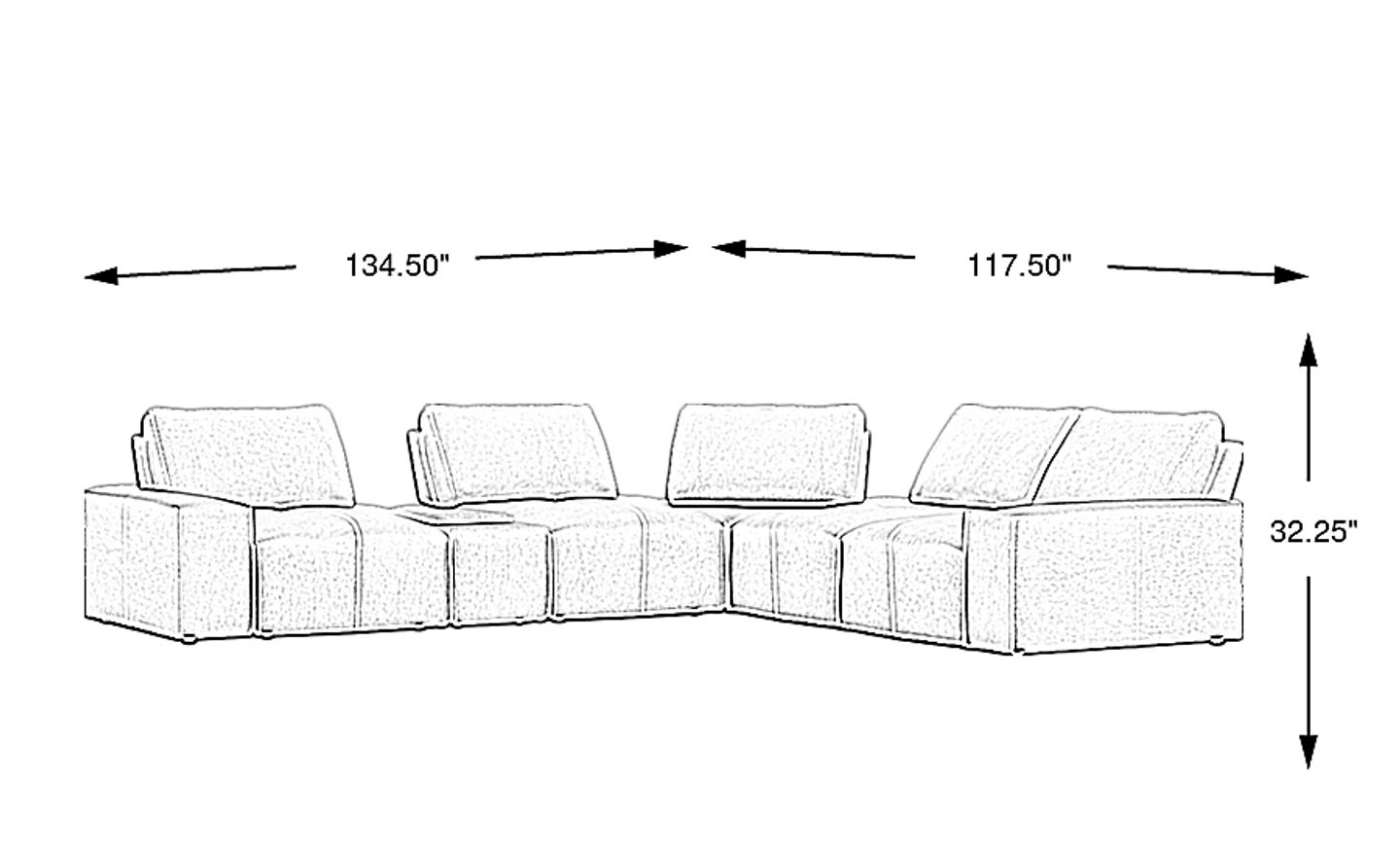 134.50w"w x 117.50d"d x 32.25h"h