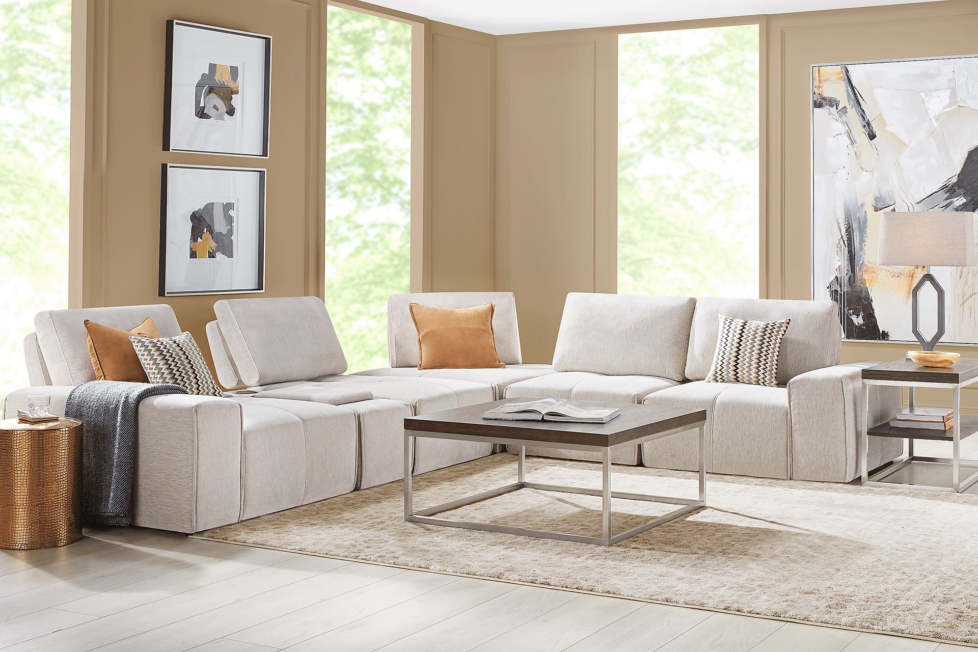 Luxurious versatility and a bold, confident style give the Laney modular sectional its one-of-a-kind charming sophistication. This collection features individual seats and pieces that can be combined and rearranged into exactly the configuration you need. Upholstered on all sides in a soft beige chenille, the oversized seats of this modular sectional offer dual-position backs for adjustable seat depth. Clean, tailored lines and tufting details keep the whole look cohesive no matter how the sectional is arranged. Upholstery: 100% Polyester.