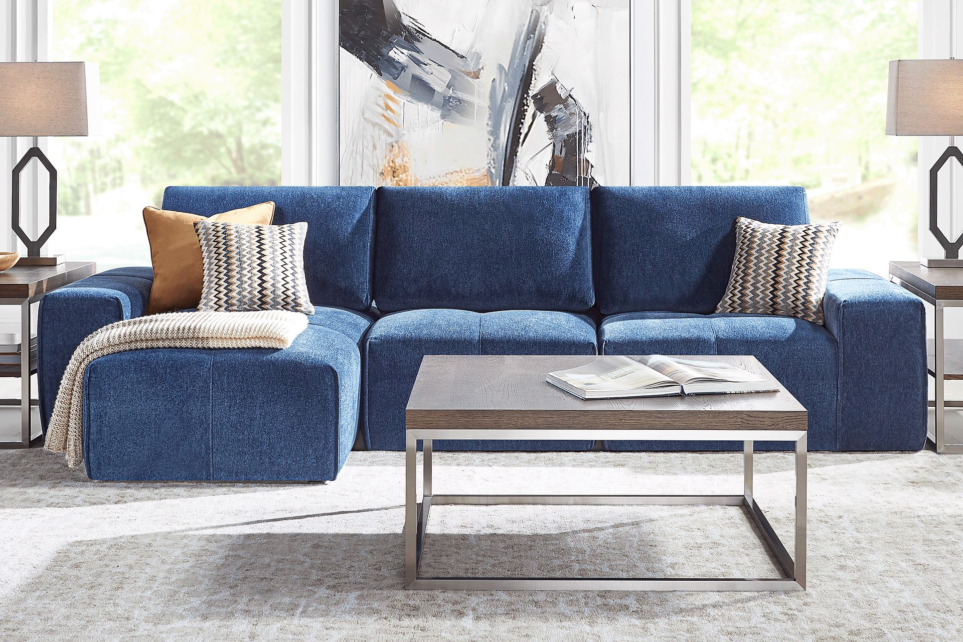 Luxurious versatility and a bold, confident style give the Laney modular sectional its one-of-a-kind charming sophistication. This collection features individual seats and pieces that can be combined and rearranged into exactly the configuration you need. Upholstered on all sides in a soft blue chenille, the oversized seats of this modular sectional offer dual-position backs for adjustable seat depth. Clean, tailored lines and tufting details keep the whole look cohesive no matter how the sectional is arranged. Upholstery: 100% Polyester.