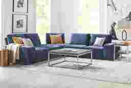 Luxurious versatility and a bold, confident style give the Laney modular sectional its one-of-a-kind charming sophistication. This collection features individual seats and pieces that can be combined and rearranged into exactly the configuration you need. Upholstered on all sides in a soft blue chenille, the oversized seats of this modular sectional offer dual-position backs for adjustable seat depth. Clean, tailored lines and tufting details keep the whole look cohesive no matter how the sectional is arranged. Upholstery: 100% Polyester.