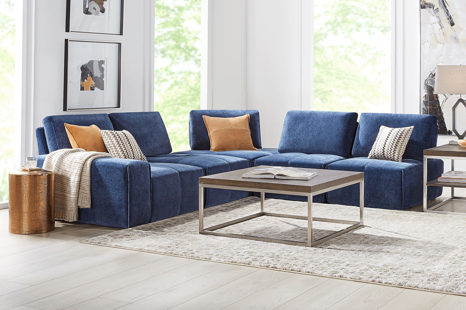 Luxurious versatility and a bold, confident style give the Laney sectional its one-of-a-kind charming sophistication. This collection features individual seats and pieces that can be combined and rearranged into exactly the configuration you need. Upholstered on all sides in a soft blue chenille, the oversized seats of this modular sectional offer dual-position backs for adjustable seat depth. Clean, tailored lines and tufting details keep the whole look cohesive no matter how the sectional is arranged. Upholstery: 100% Polyester.