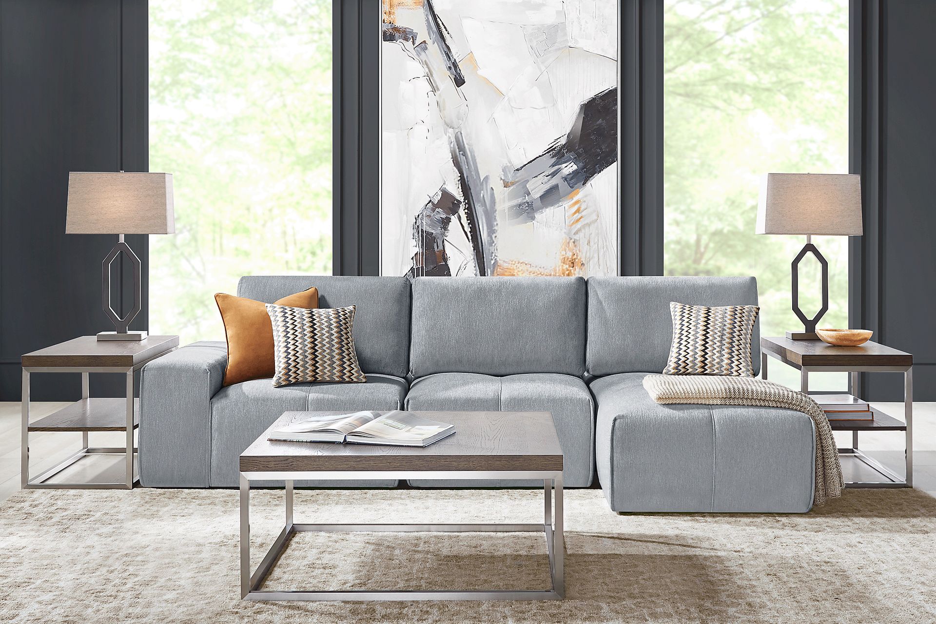 Luxurious versatility and a bold, confident style give the Laney modular sectional its one-of-a-kind charming sophistication. This collection features individual seats and pieces that can be combined and rearranged into exactly the configuration you need. Upholstered on all sides in a soft gray chenille, the oversized seats of this modular sectional offer dual-position backs for adjustable seat depth. Clean, tailored lines and tufting details keep the whole look cohesive no matter how the sectional is arranged. Upholstery: 100% Polyester.
