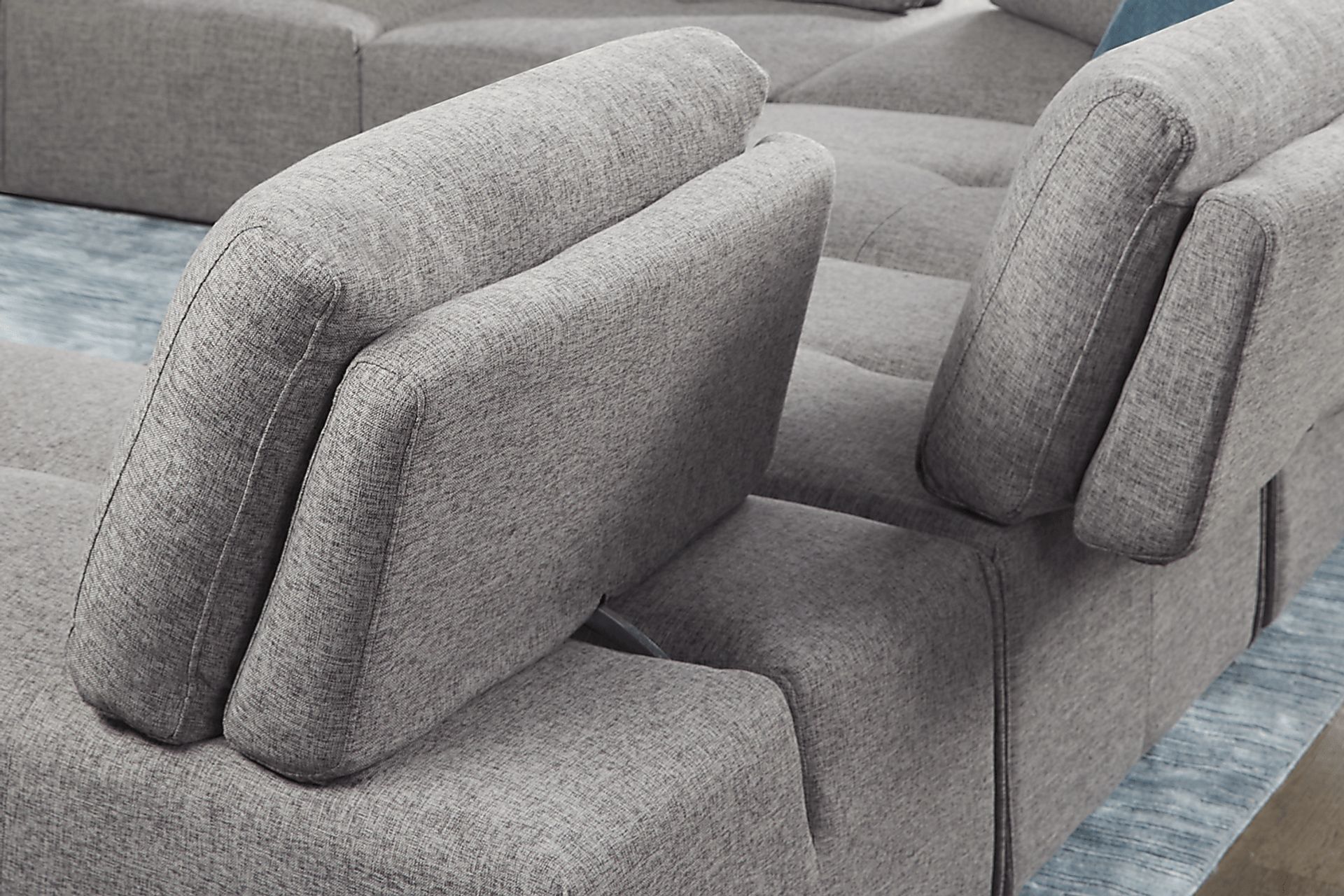 The Laney Park sectional is packed with features meant to enhance your lounging experience. Each oversized seat has a smooth adjusting back mechanism for customizable seat depth, making it the perfect place for entertaining friends or relaxing with family. Contemporary and stylish, the dark gray color and flat woven textured fabric are enhanced with clean, tailored lines. Upholstery: 100% Polyester