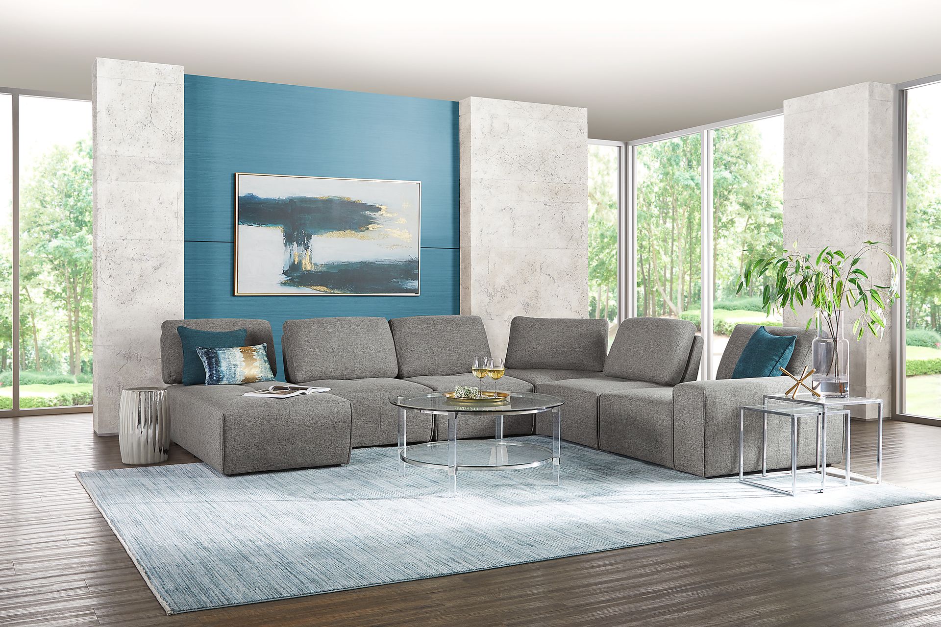 The Laney Park sectional is packed with features meant to enhance your lounging experience. Each oversized seat has a smooth adjusting back mechanism for customizable seat depth, making it the perfect place for entertaining friends or relaxing with family. Contemporary and stylish, the dark gray color and flat woven textured fabric are enhanced with clean, tailored lines. Upholstery: 100% Polyester.