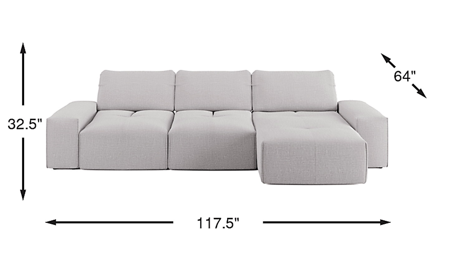 With all the same great features as its larger counterpart but sized for smaller spaces, the Laney Park sectional upgrades your lounging experience. Each oversized seat has a smooth adjusting back mechanism for customizable seat depth, making it the perfect place for entertaining friends or relaxing with family. A chaise on one side provides luxurious comfort. Contemporary and stylish, the light gray color and flat woven textured fabric are enhanced with clean, tailored lines. 100% Polyester