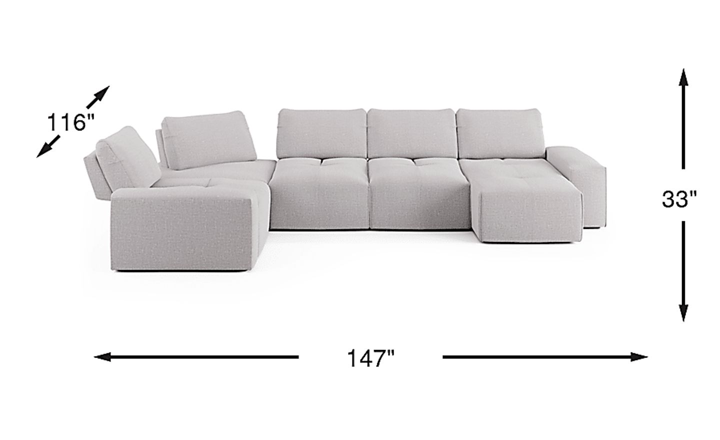 The Laney Park sectional is packed with features meant to enhance your lounging experience. Each oversized seat has a smooth adjusting back mechanism for customizable seat depth, making it the perfect place for entertaining friends or relaxing with family. Contemporary and stylish, the light gray color and flat woven textured fabric are enhanced with clean, tailored lines. Upholstery: 100% Polyester. Accent pillows not included.