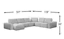 The Laney Park sectional is packed with features meant to enhance your lounging experience. Each oversized seat has a smooth adjusting back mechanism for customizable seat depth, making it the perfect place for entertaining friends or relaxing with family. Contemporary and stylish, the light gray color and flat woven textured fabric are enhanced with clean, tailored lines. Upholstery: 100% Polyester. Accent pillows not included.