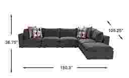 With a sweeping sense of relaxation and a sophisticated undertone of class, the Langford Park sectional turns any room into your favorite space for quiet contemplation, intimate gatherings or entertaining central. Transitional in style, this modular sectional features individual pieces with 360-degree upholstery for your endless rearrangement pleasure. Plush, woven chenille in charcoal is joined by jacquard pillows that add a special splash of color and style. Feather-blend seat and back cushions provide ample room for relaxation while the attached seat cushions lend an elevated sense of the serene. Non-skid legs keep everything just as you like it. Two corner chairs, three armless chairs and bumper ottoman. Upholstery: 100% Polyester.