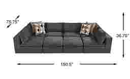 With a sweeping sense of relaxation and a sophisticated undertone of class, the Langford Park sectional turns any room into your favorite space for quiet contemplation, intimate gatherings or entertaining central. Transitional in style, this modular sectional features individual pieces with 360-degree upholstery for your endless rearrangement pleasure. Plush, woven chenille in charcoal is joined by jacquard pillows that add a special splash of color and style. Feather-blend seat and back cushions provide ample room for relaxation while the attached seat cushions lend an elevated sense of the serene. Non-skid legs keep everything just as you like it. Two corner chairs, four armless chairs and two bumper ottoman. Upholstery: 100% Polyester.