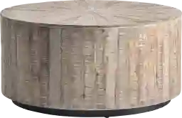 A touch of nature's playfulness follows the Langston collection home. This transitional cocktail table features a light brown finish across a paneled surface of solid mango wood. The top stands on a banded plinth base in black, creating a floating effect.