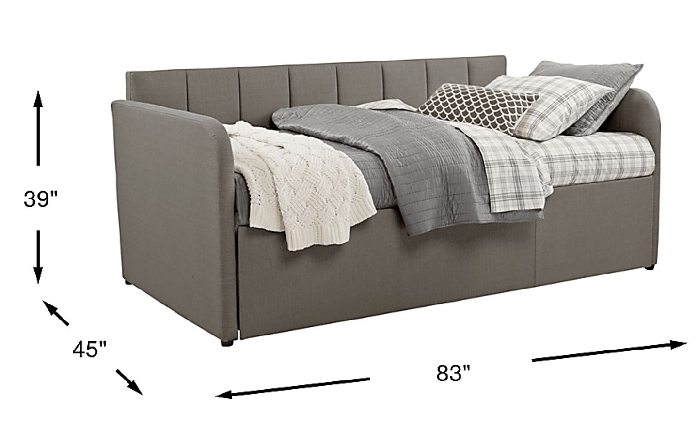 Turn any room into a guest room with the space saving Lanie daybed. It is upholstered in gray fabric with a classic channel back. So, whether by an overnight guest, or for a quick nap, this is a multi-functional piece you'll be glad to have on hand. Trundle sold separately. Mattress sold separately.