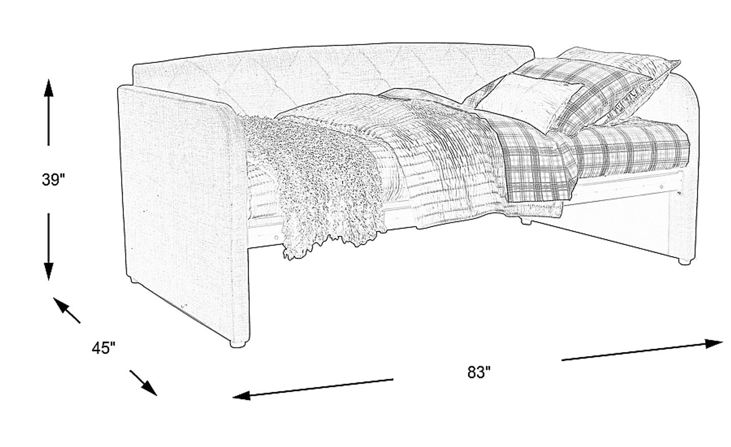 This daybed is specifically engineered as a multi-functional, space-saving piece. With a width of 45 inches and a length of 83 inches, it effectively replaces the need for both a separate sofa and a guest bed in a single room. Its "panel arm" design and tapered legs create a clean, elevated silhouette that helps a small room feel more open and less cluttered compared to bulkier, floor-length furniture.