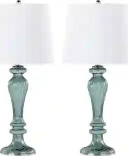 Lannoo Hills Turquoise Lamp Set - Fluted glass column base with linen drum shades, perfect for adding style and light to any space.