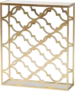 Yes, this table is specifically designed for space-constrained environments. With an ultra-slim depth of just 8.25 inches, it provides a functional surface for keys or decor in tight hallways and foyers without obstructing foot traffic. Its open quatrefoil metal frame also maintains a sense of visual "airiness," preventing small rooms from feeling crowded.