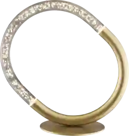 Experience the fusion of fine art and ambient lighting with the Lanyo Edge Gold Lamp. Designed to infuse a dynamic touch into contemporary spaces, this energy-efficient lamp offers a captivating aesthetic through its sparkling silhouette. Crafted with precision, it boasts a sleek gold finish on a sturdy metal frame, housing a mesmerizing 6-watt crystal acrylic tube with a captivating bubble effect. Conveniently equipped with an in-line dimmer switch, this lamp provides variable lighting levels to cater to your unique preferences and needs. Illuminate your surroundings with this stunning blend of form and function. Partial assembly may be required.
