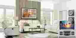 Lanzo Off-white Leather 6 Pc Living Room With Reclining Sofa Plus 70 In. Tv