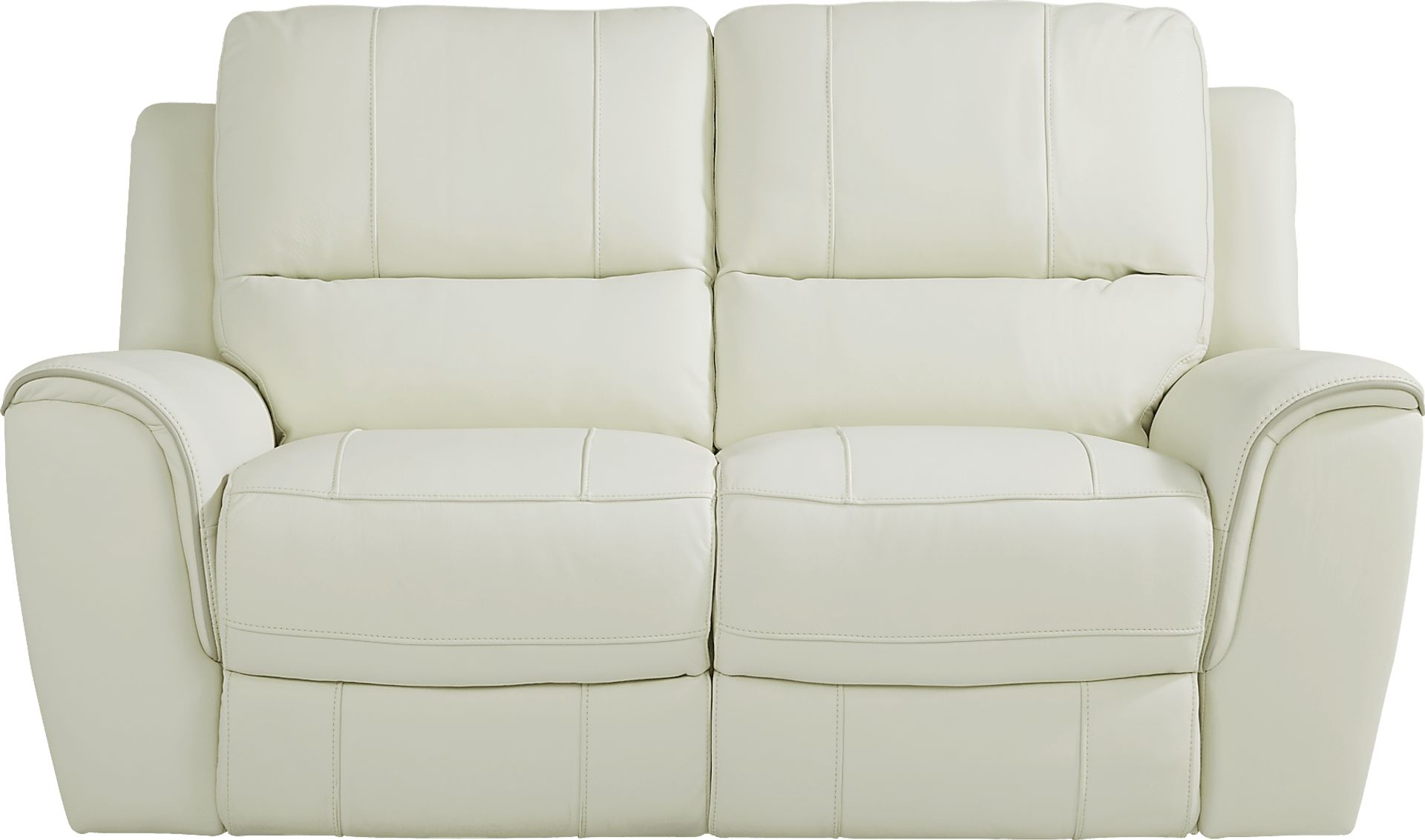 Two can easily indulge in the comfort of luxurious top grain leather where the body touches with the off-white Lanzo stationary loveseat. Each headrest is ultra-plush, providing optimum neck and head support as you read, watch TV, or relax. Attached cushions and shaped roll arms are highlighted with coordinating stitching details for a clean, contemporary look. Upholstery: Top grain leather where the body touches and vinyl sides and backs.