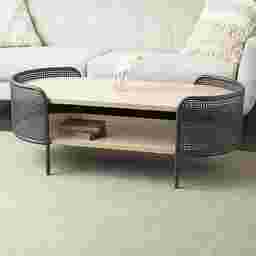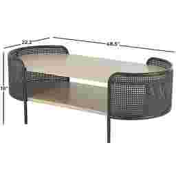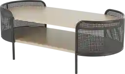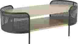 The Laozu Cocktail Table is the perfect addition to your home. Designed with timeless sophistication, this living room coffee table features rich, old-world textures and warm hues for a refined, classic taste of luxury. Crafted from MDF and iron, this oval table showcases a traditional style with a matte light brown finish and black mesh side panels. The unique, two-toned design includes mesh side panels and an additional shelf for storage.