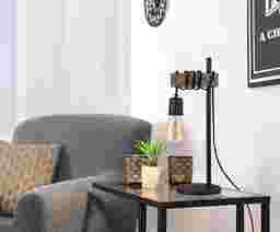 Add an exciting industrial element to any room of your home with the Laredo Bay lamp. Subtle with a beautiful black and dark brown finish, this lamp fits well within a modern, rustic themed home. Partial assembly may be required.