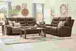 Unwind anytime with the casual, contemporary Laredo Springs reclining living room. This collection's brown microfiber fabric with stitching detail lends a relaxed look and feel. The reclining sofa allows you to adjust the chaise-style footrests to your preference while the loveseat provides luxurious comfort. Stainless steel cupholders are located inside the arms of the sofa and the loveseat's center console, ready to hold drinks or snacks, and the loveseat's built-in USB ports conveniently charge electronic devices from your seat. The loveseat console also includes hidden storage to stow away remotes, reading glasses and more. Upholstery: 100% Polyester. Cleaning Instructions: Use water based cleaning agents or foam. Lamps not as shown in room image. Accent pillows not included.